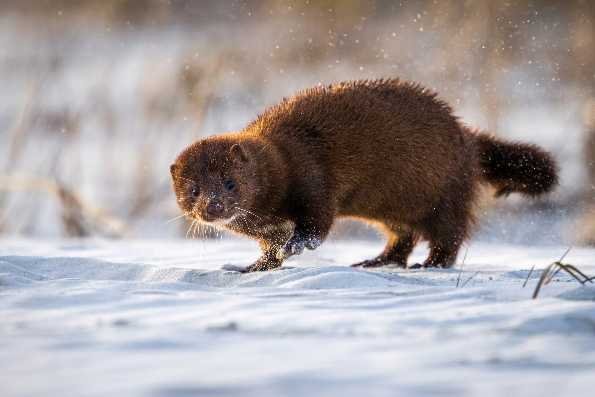 "Winter Mink on the Move – Huntington Beach State Park" This image captures an American Mink in its element at Huntington Beach State Park. Bathed in golden light, the mink moves gracefully across the sand, its rich brown fur standing out against the landscape. Mink lives within the rocks along the jetty. It is also common to see a folks fishing along the jetty in the winter. A lady put down her reel after the mink scurried away to share a story of her own. She had caught a large fish one day and just had to take a picture of it. So, she sat the fish down and turned and grabbed her camera. When she turns back a mink was scurrying away with her fish. She said oh well, maybe it had babies to feed.